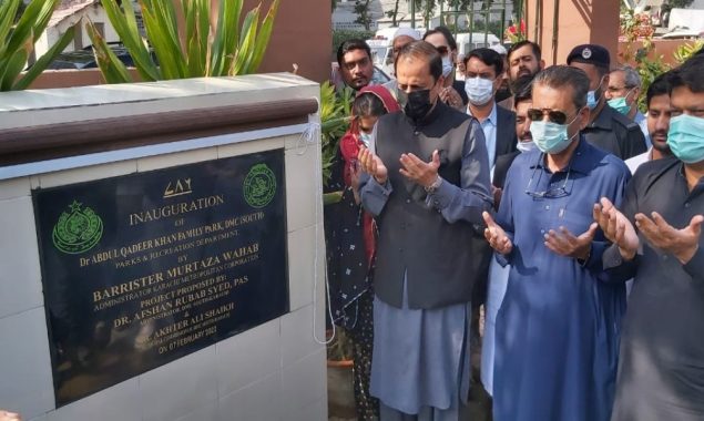 ایڈمنسٹریٹر کراچی، مشیر قانون اور ترجمان حکومت سندھ بیرسٹر مرتضیٰ وہاب نے کلفٹن میں واقع ڈاکٹر عبدالقدیرخان فیملی پارک کا افتتاح کردیا۔