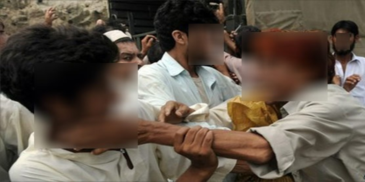 شہریوں نے مبینہ ڈاکو کو پکڑنے کے بعد اس پر تشدد کیا اور رسیوں سے باندھ دیا۔
