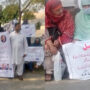 مظاہرین نے بینرز اٹھا رکھے ہیں جس پر آصف علی زرداری سے اپیل کی گئی ہے۔