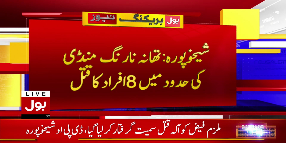 کی حدود میں 8 افراد کا قتلبراہ راست دیکھیں : https://www.bolnews.com/urdu/pakistan/2022/10/303630/amp/#BOLNews #BreakingNews #Sheikhupura pic.twitter.com/hd3CDDOu0JAdvertisement— BOL Network (@BOLNETWORK) October 8, 2022