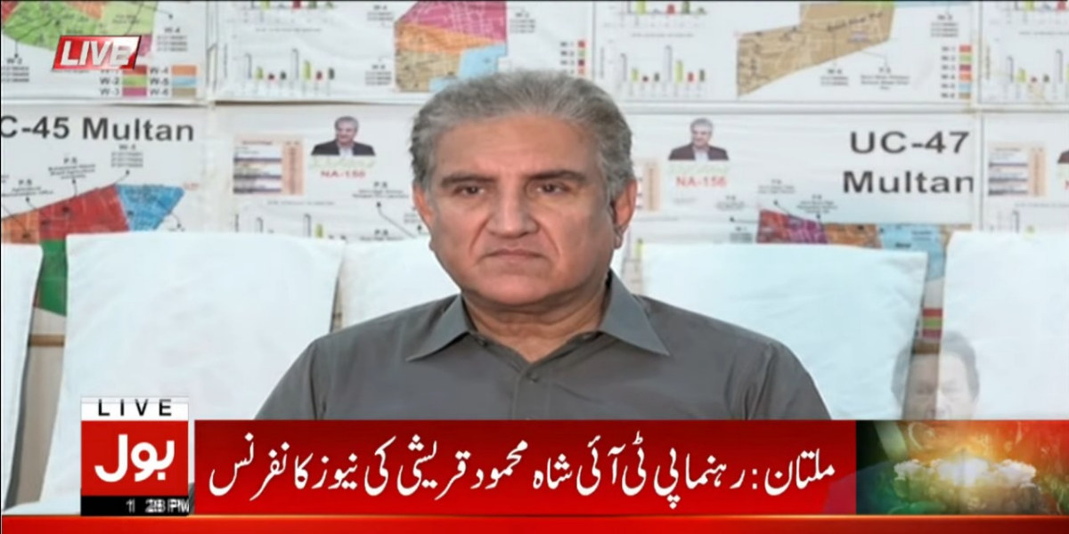 پاکستان تحریک انصاف کے وائس چیئرمین مخدوم شاہ محمود قریشی نے ملتان میں اپنی رہائش گاہ باب القریش میں پریس کانفرنس کرتے ہوئے کہا کہ آج کابینہ نے عمران خان، اسد عمر اور میرے خلاف کارروائی کا فیصلہ کیا، ایف آئی اے کو کہا گیا ہے کہ وہ انکوائری کرے۔