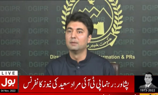 رہنما پی ٹی آئی مراد سعید نے پشاور میں پریس کانفرنس کرتے ہوئے کہا کہ عمران خان کو تین گولیاں لگی ہیں، گولیاں لگنے کے باجود عمران خان کارکنوں کے حوصلے بلند کررہے تھے۔