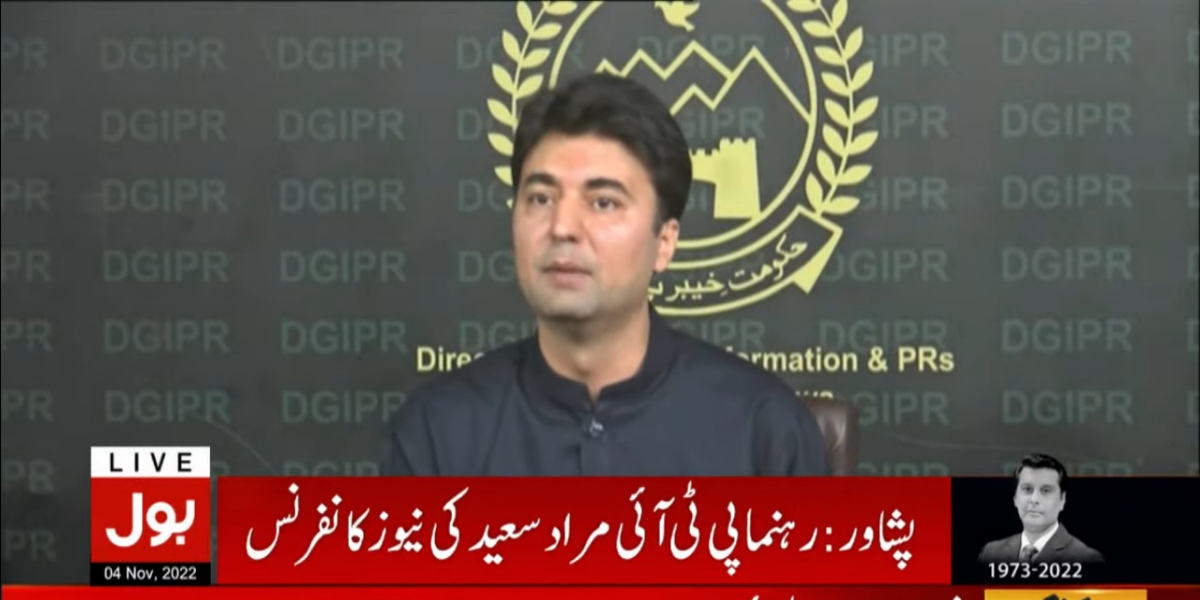 رہنما پی ٹی آئی مراد سعید نے پشاور میں پریس کانفرنس کرتے ہوئے کہا کہ عمران خان کو تین گولیاں لگی ہیں، گولیاں لگنے کے باجود عمران خان کارکنوں کے حوصلے بلند کررہے تھے۔