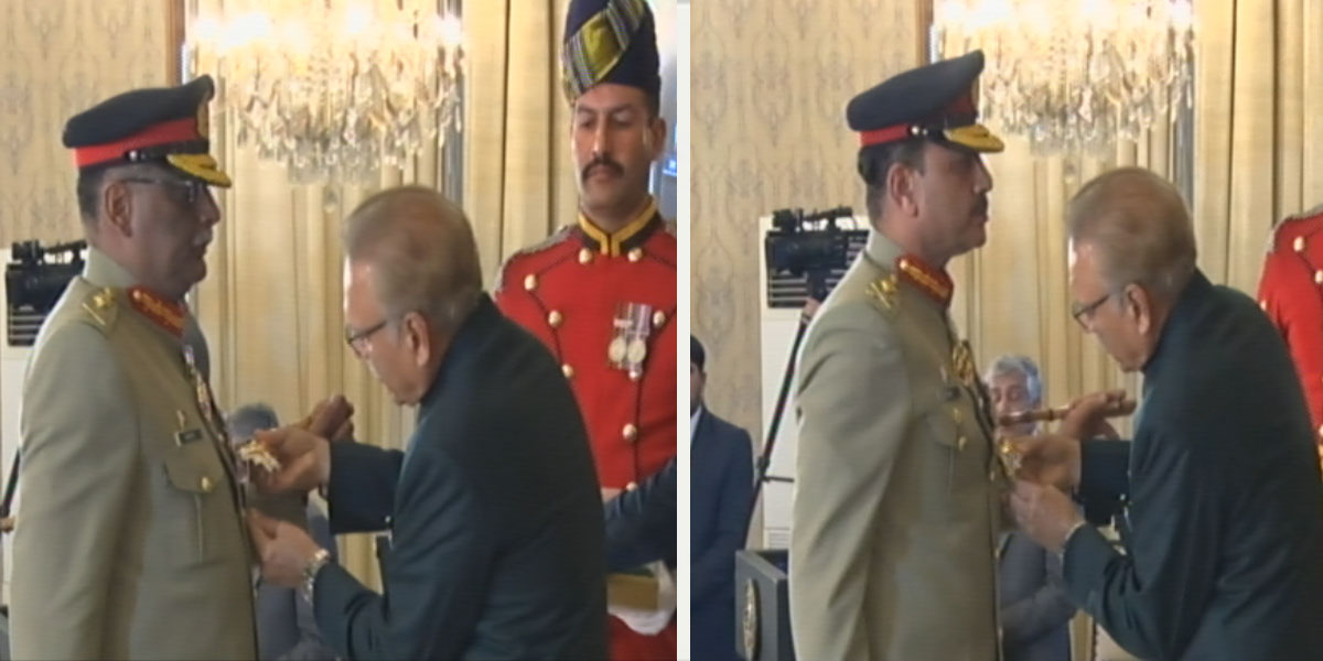 صدر مملکت نے آرمی چیف جنرل عاصم منیر اور چیئرمین جوائنٹ چیفس آف اسٹاف کمیٹی جنرل ساحر شمشاد کو نشان امتیاز (ملٹری) عطا کیا۔