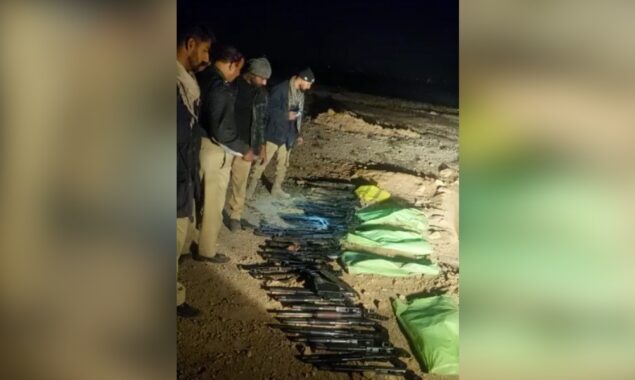 تفصیلات کے مطابق کراچی کے علاقے گلشن حدید لنک روڈ کے قریب زمین میں دفنایا گیا اسلحہ بھاری تعداد میں برآمد کیا گیا ہے جس میں تیس بور پستول ، شاٹ گن موجود ہیں۔
