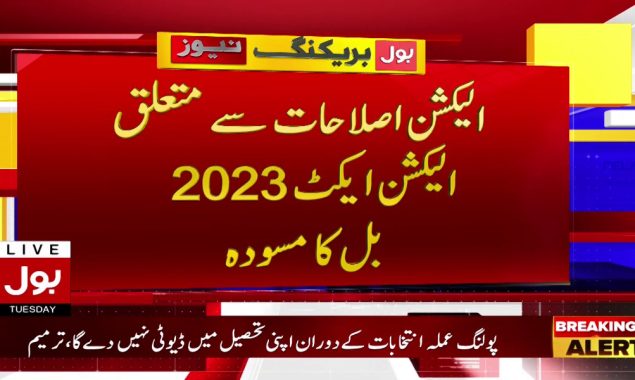 الیکشن ایکٹ 2023 بل کے مسودے کی تفصیلات بول نیوز کو موصول ہوگئی ہیں۔