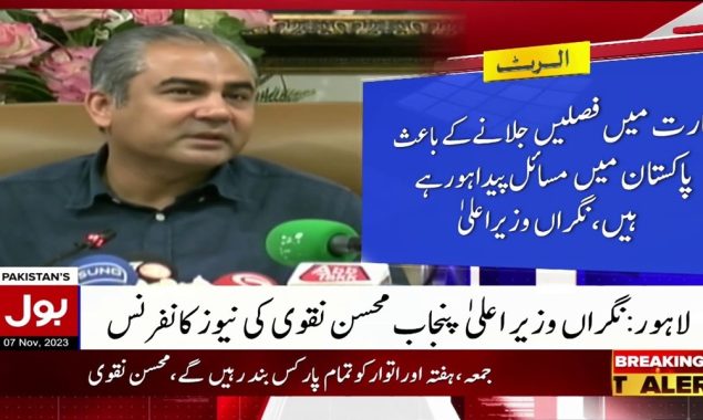 نگراں وزیر اعلیٰ پنجاب محسن نقوی نے کہا ہے کہ بھارت میں فصلیں جلانے کے باعث پاکستان میں مسائل پیدا ہورہے ہیں۔