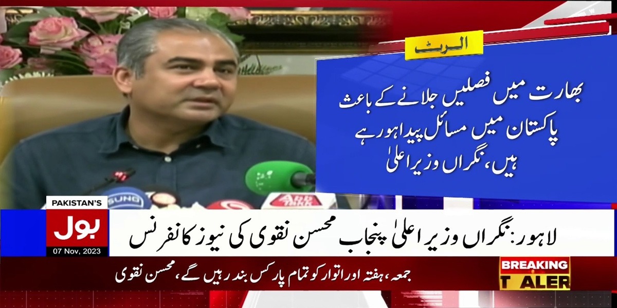 نگراں وزیر اعلیٰ پنجاب محسن نقوی نے کہا ہے کہ بھارت میں فصلیں جلانے کے باعث پاکستان میں مسائل پیدا ہورہے ہیں۔