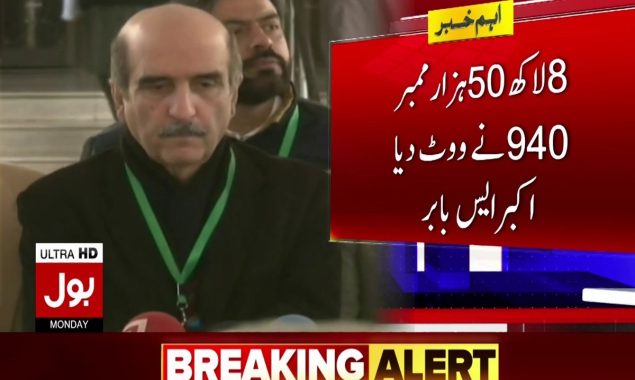 اکبر ایس بابر نے اپنے جاری کردہ بیان میں کہا کہ ساڑھے آٹھ لاکھ (850,000) پی ٹی آئی ممبران میں سے نو سو چالیس (940)، یعنی صفر اعشاریہ ایک ایک یا 0.11 فیصد پی ٹی آئی ممبران نے تازہ ترین انڑا پارٹی الیکشن میں ووٹ ڈالا۔