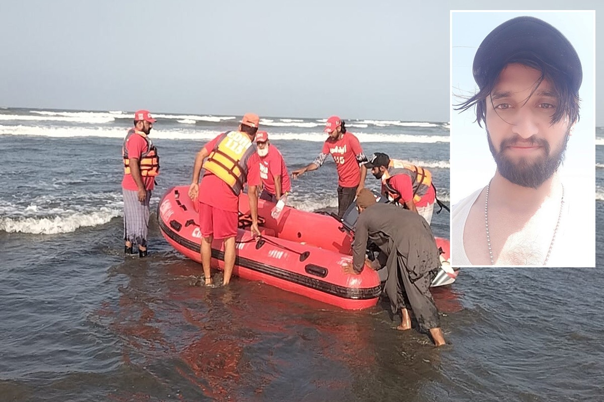 ذرائع کے مطابق سمندر میں کودنے والے نوجوان کی تلاش جاری ہے۔