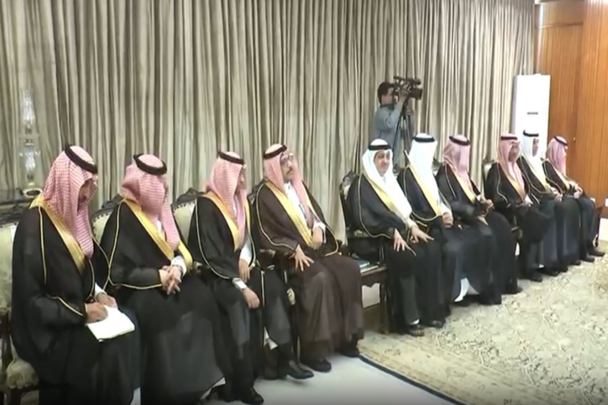 ملاقات میں وزیر اعظم محمد شہباز شریف نے سعودی مہمانوں کا مقامی ہوٹل میں استقبال کیا۔