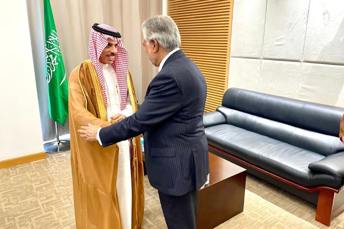 پاکستان کے نائب وزیراعظم اور وزیرخارجہ اسحاق ڈار سے سعودی عرب کے وزیر خارجہ فیصل بن فرحان آل سعود نے ملاقات کی۔