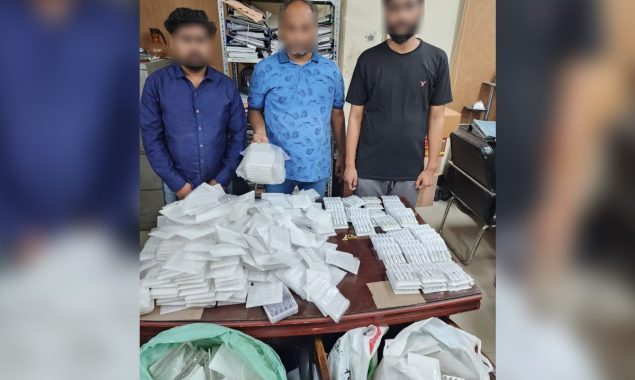 ملزمان سے بھاری مقدار میں ادویات کی پیکنگ میٹریل بھی برآمد کیے گئے، برآمد ہونے والے انجیکشنز کی مالیت لاکھوں روپے ہے۔
