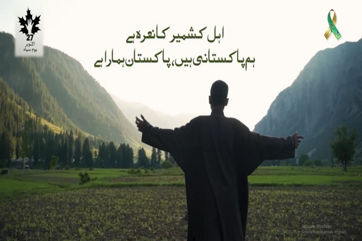 اہل کشمیر کا نعرہ “ہم پاکستانی ہیں، پاکستان ہمارا ہے” کے عنوان سے جاری کیے گئے نغمے میں 27 اکتوبر یوم سیاہ کشمیر کے موقع پر مقبوضہ کشمیر کے عوام سے یکجہتی کا اظہار کیا گیا ہے۔