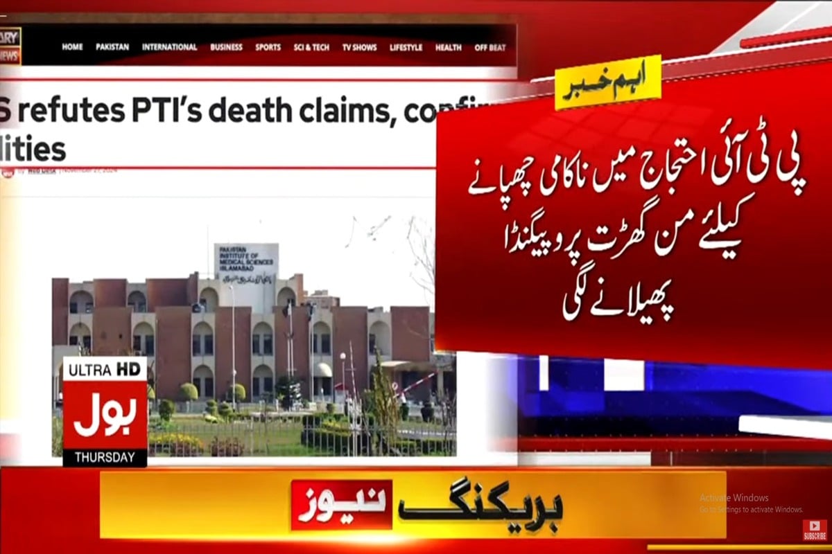 سوشل میڈیا پر بھی پی ٹی آئی سے منسلک نام نہاد یو ٹیوبرز کا بھی منفی پروپیگنڈا جاری ہے جبکہ ہلاکتوں کے منفی پروپیگنڈے کے حوالے سے دو بڑے اسپتالوں پمز اور پولی کلینک کے وضاحتی بیان سامنے آچکے ہیں۔