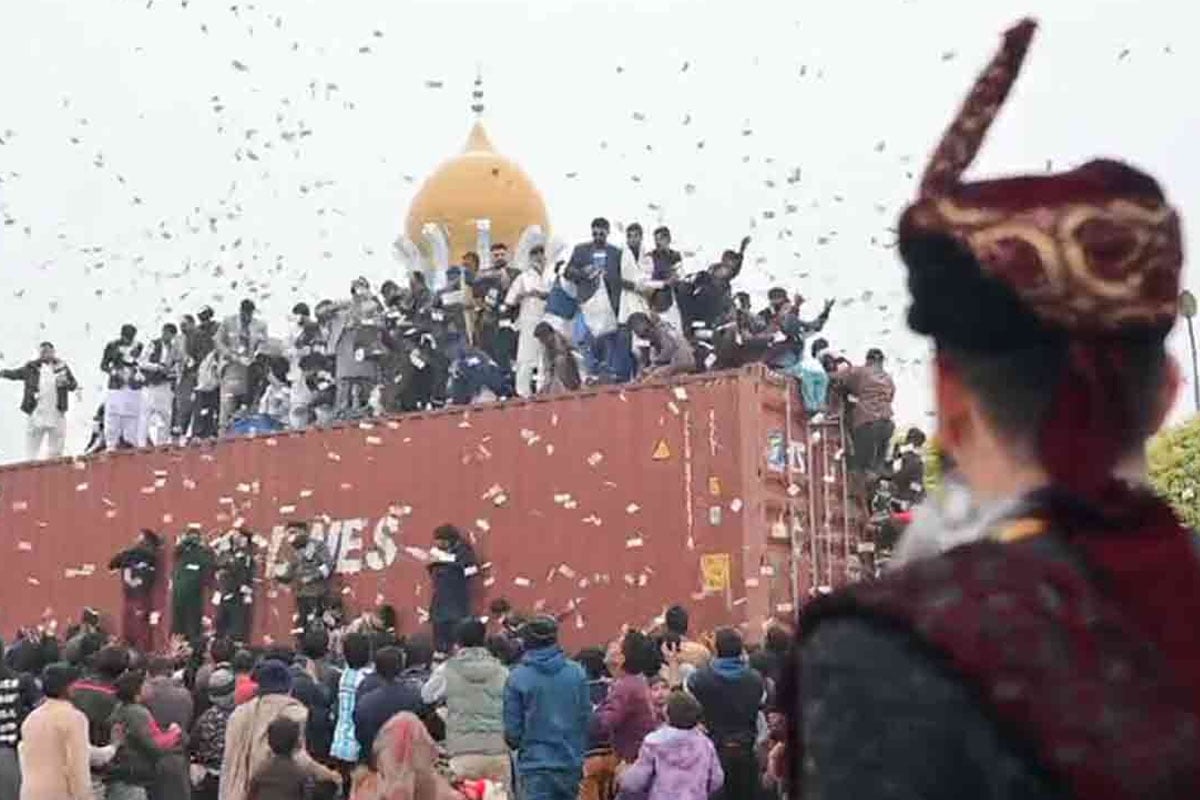 تقریب میں نوٹ لٹانے کے لیے ایک خصوصی کنٹینر رکھا گیا تھا، جہاں شادی میں شریک مہمانوں اور مقامی افراد نے بڑی تعداد میں جمع ہو کر کرنسی لوٹی۔