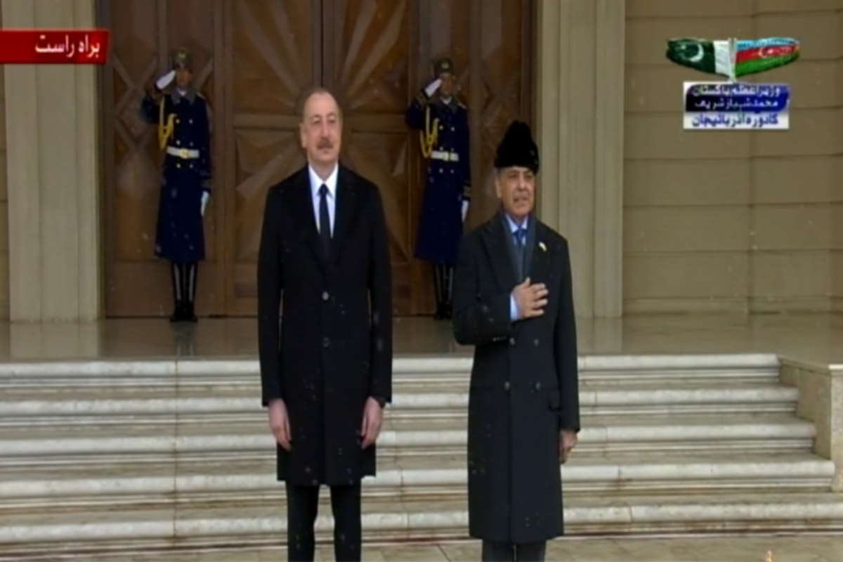 آذربائیجان کے زوولبا محل آمد پر آذربائیجان کے صدر الہام علیوف نے وزیراعظم شہباز شریف کا استقبال کیا، جس کے بعد ان کو گارڈ آف آنر بھی پیش کیا گیا۔