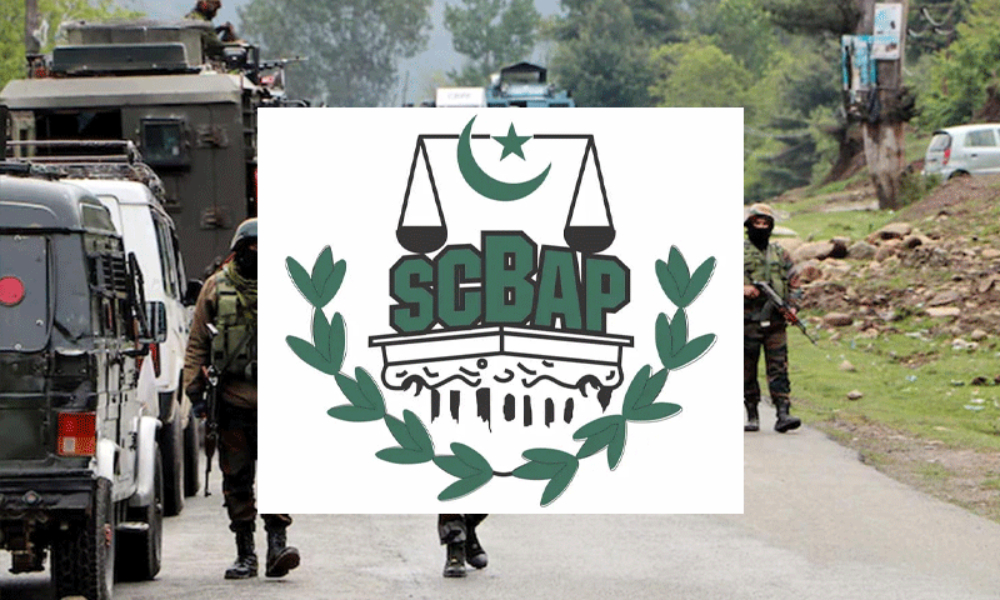 سپریم کورٹ بار ایسوسی ایشن کی جانب سے جاری اعلامیہ میں کہا گیا ہے کہ مقبوضہ کشمیر میں بھارتی جنگی جرائم اور انسانی حقوق کی خلاف ورزیوں پرتشویش ہے۔