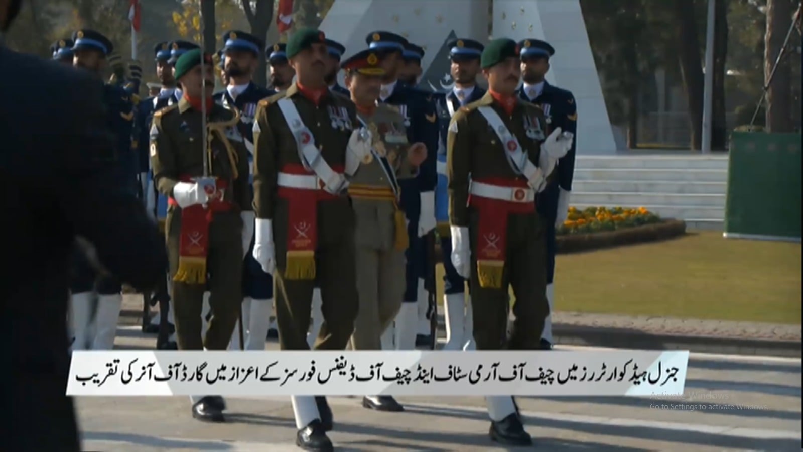اسلام آباد: جی ایچ کیو میں “چیف آف آرمی اسٹاف چیف آف ڈیفنس فورسز سید عاصم منیر کے اعزاز میں گارڈ آف آنر” کی خصوصی تقریب کا انعقاد کیا گیا۔