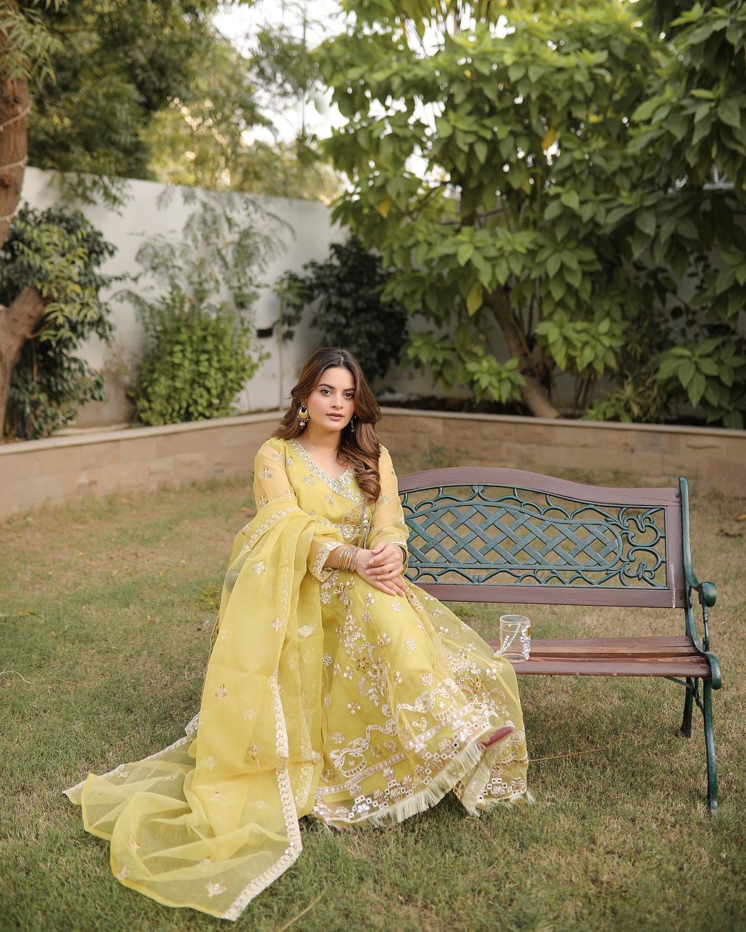 منال خان نے فوٹو اینڈ ویڈیو شئیرنگ ایپ انسٹاگرام پر اپنی تصاویر پوسٹ کی ہیں جس میں وہ لیمن کلر کا خوبصورت لباس پہنی ہوئی ہیں۔