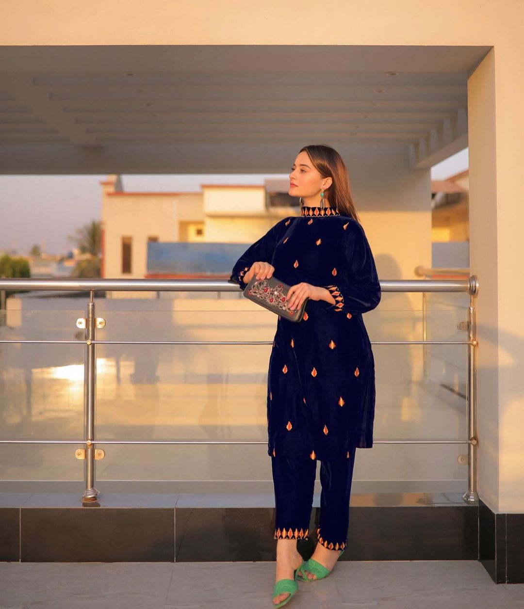 شیئر کی گئی تصاویر میں دیکھا جاسکتا ہے کہ اداکارہ نے نیلے رنگ کا خوبصورت مشرقی لباس زیب تن کیا ہوا ہے۔