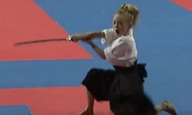ویڈیو میں دیکھا جا سکتا ہے کہ بچی بڑی مہارت سے مارشل آرٹس کر رہی ہے۔