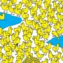 اس تصویر میں جیسا کہ آپ دیکھ سکتے ہیں کہ لاتعداد بطخ ہیں لیکن ان میں پیلے رنگ کا ہی ایک ننھا سا چوزا بھی موجود ہے۔