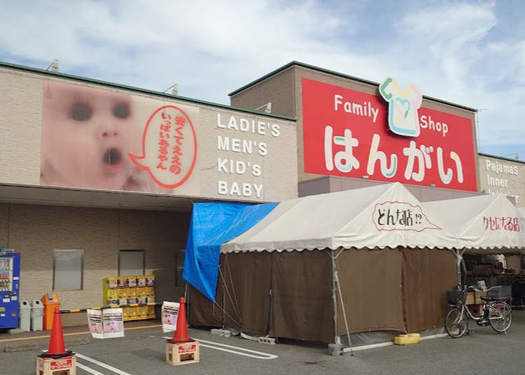 ہنگائی نامی کپڑوں کی یہ چھوٹی سی دکان جاپان کے صوبے شیگا کے نگاہاما شہر میں واقع ہے جو اپنے خوفناک بل بورڈ کی وجہ سے سوشل میڈیا پر وائرل ہوگئی ہے۔