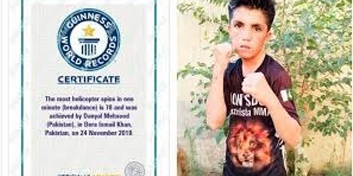 تفصیلات کے مطابق جنوبی وزیرستان سے تعلق رکھنے والے 11 سالہ دانیال نے ایک منٹ میں 78 ہیلی کاپٹر اسپن کرکے 70 اسپنز کا ورلڈ ریکارڈ توڑ دیا اور اپنا نام گینیز بک آف ورلڈ ریکارڈ میں درج کرالیا ہے