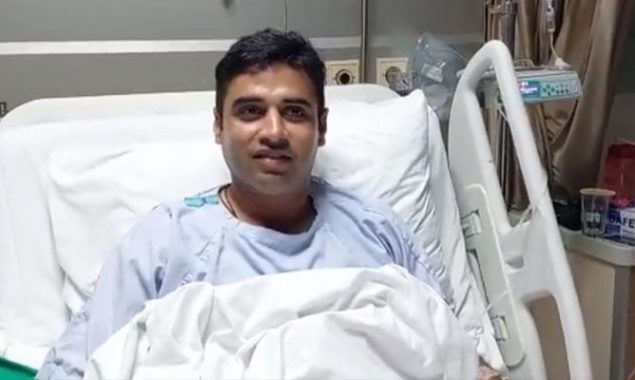 ویڈیو میں دیکھا جاسکتا ہے کہ قومی کرکٹر اسپتال میں موجود بستر پر موجود ہیں۔