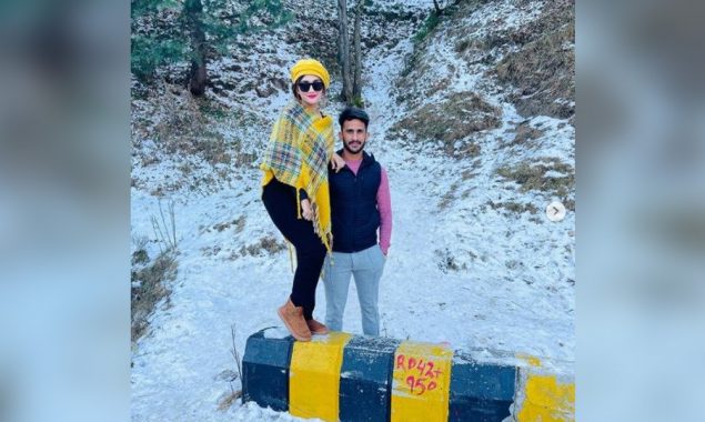 حسن علی کی جانب سے شیئر کی گئی تصویر میں دیکھا جاسکتا ہے کہ وہ مری کی حسین وادی میں موجود ہیں جبکہ ان کے ہمراہ اہلیہ سمعیہ خان بھی موجود ہیں جو برف باری اور خبصورت نظاروں سے لطف اندوز ہورہی ہیں۔