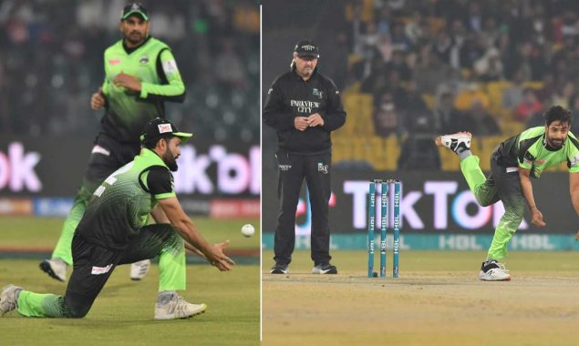 دوسری جانب لاہور قلندرز کے مڈل آرڈر بلے باز کامران غلام اس موقع کا فائدہ اٹھانے میں ناکام رہے اور انہوں نے حضرت اللہ زازئی کا کیچ چھوڑ دیا جس پر کامران مسکرادیے لیکن حارث رؤف انہیں غصے سے گھورتے رہے۔