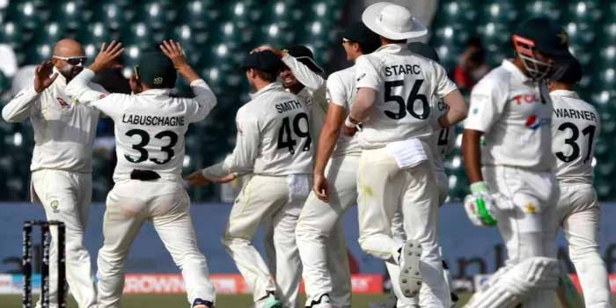 لاہور کے قذافی اسٹیڈیم میں پاکستان اور آسٹریلیا کے درمیان تیسرا اورآخری ٹیسٹ میچ کھیلا گیا جس میں آسٹریلیا نے پاکستان کو 115 رنز سے شکست دے دی ہے۔ پاکستان ٹیم دوسری اننگ میں صرف 235 رنز پر ہی ڈھیر ہوگئی۔