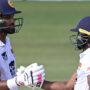 تاہم نروشن ڈکویلا اور دنیش چندیمل نے ٹیم کو سہارا دیا اور ساتویں وکٹ کے لیے 99 رنز کی ناقابل شکست شراکت قائم کرکے میچ کو ڈرا کردیا۔