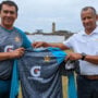 پاکستان اور سریلنکا کی ٹیموں کے مینجرز نے ٹیم شرٹس کا تبادلہ کیا ہے۔