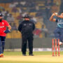 انگلینڈ کے کپتان معین علی شاندار طریقے سے گیند کی ٹائمنگ کر رہے تھے لیکن انہیں 20 ویں اوور میں وائیڈ یارکرز نے چیلنج کر دیا۔