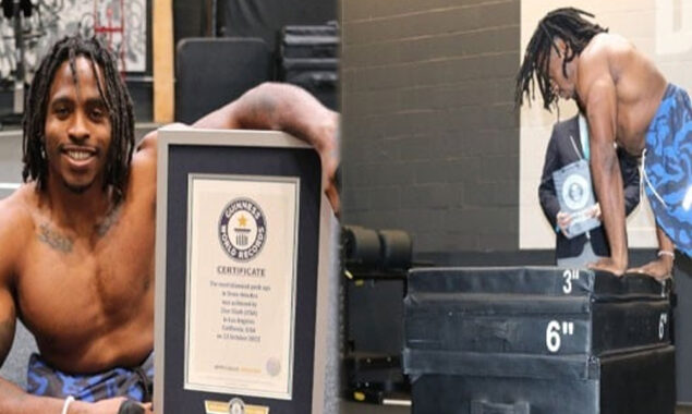 ٹانگوں کے بغیر پیدا ہونے والے امریکی ایتھلیٹ نے ہاتھوں کی مدد سے لمبی باکس جمپ لگا کر اور تین منٹوں میں سب سے زیادہ ڈائمنڈ پش اپس لگا کر گینیز عالمی ریکارڈ اپنے نام کرلیے۔