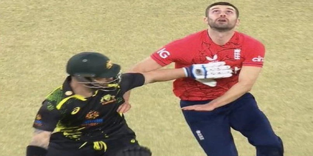 آسٹریلیا کے بلے باز میتھیو ویڈ نے شاٹ کھیلا تو شاٹ کھیلنے کے بعد گیند ہوا میں اوپر اٹھ گئی اور اس کو پکڑنے کیلئے فالو تھرو میں مارک ووڈ آگے بڑھے۔