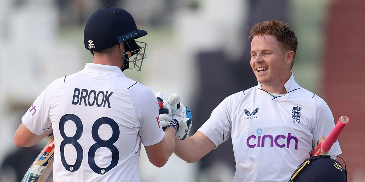 بعد ازاں اولی پوپ (108) اور ہیری بروک (101 ناٹ آؤٹ) نے 176 رنز کی شاندار شراکت قائم کی۔