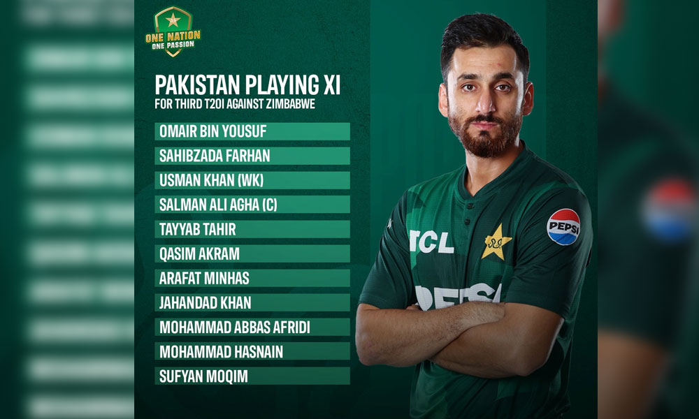پاکستان نے زمبابوے کے خلاف تیسرے ٹی ٹوئنٹی کے لئے پلیئنگ الیون کا اعلان کردیا ہے۔