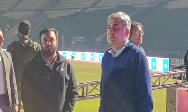 محسن نقوی کا علی الصبح دورہ قذافی اسٹیڈیم، افتتاحی تقریب کے انتظامات کا جائزہ