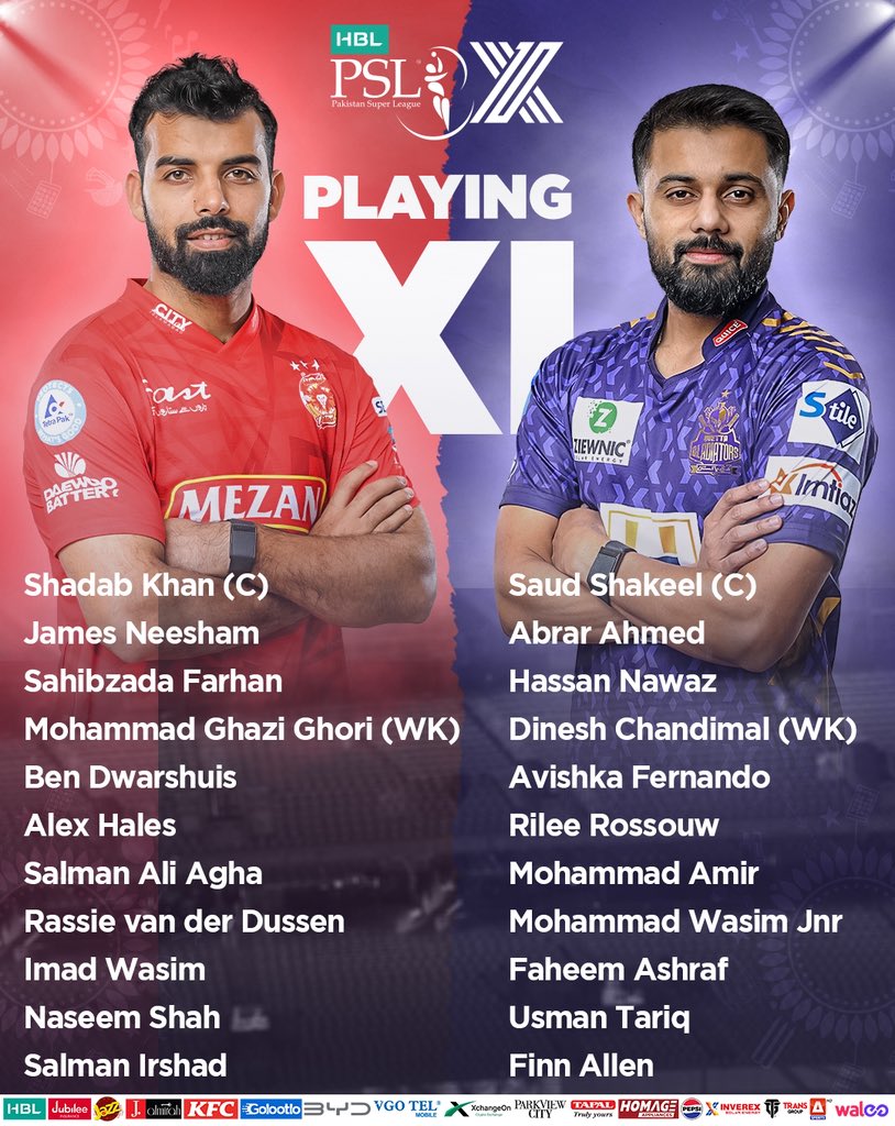 اس سے قبل ٹاس کے موقع پر کوئٹہ گلیڈی ایٹرز کے کپتان سعود شکیل نے بتایا کہ ٹیم میں 3 تبدیلیاں کی گئی ہیں، فن ایلن، رائلی روسو اور محمد عامر کی کوئٹہ گلیڈی ایٹرز میں واپسی ہوئی ہے۔