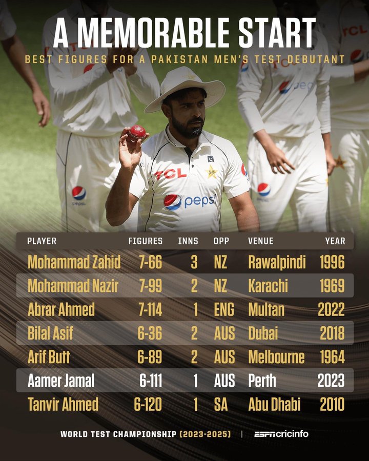 اس سےقبل 1964 میں عارف بٹ نے آسٹریلیا کے خلاف ہی میلبرن میں ڈیبیو کے دوران 89 رنز کے عوض 6 وکٹیں حاصل کی تھیں۔