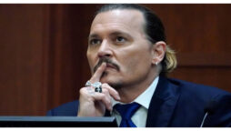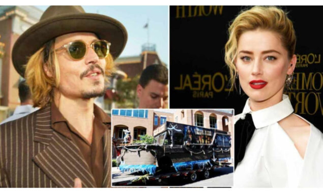 ڈیپ کے کچھ سخت پرستار عدالت کے باہر پائریٹس آف دی کیریبین فلموں کے جہاز کے طور پر سجی ہوئی...