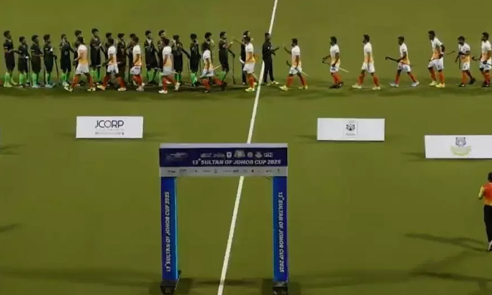 ملائیشیا میں جاری سلطان آف جوہر ہاکی کپ کے ایک اہم مقابلے میں پاکستان اور بھارت کی جونیئر ٹیمیں مدِ مقابل آئیں۔ میچ کے آغاز سے قبل دونوں ٹیموں کے کھلاڑیوں نے روایتی انداز میں ایک دوسرے سے مصافحہ کیا، جو کہ کھیل کے جذبے اور اسپورٹس مین اسپرٹ کی عکاسی کرتا ہے۔ میچ میں پاکستانی ٹیم نے جارحانہ آغاز کیا اور حنان شاہد نے شاندار گول کرتے