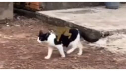 بلی کے اوپر سواری کرتا یہ منفرد جانور کون؟ ویڈیو دیکھ کر بتائیں