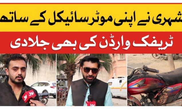 شہری نے اپنی موٹر سائیکل کے ساتھ ٹریفک وارڈن کی بھی جلا دی