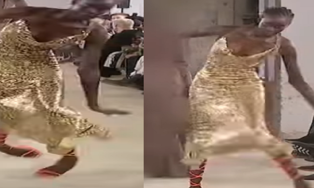 برطانیہ میں جاری لندن فیشن ویک 2022 میں ایک خاتون ماڈل کو ریمپ پر واک کے دوران انتہائی شرمندگی کا...