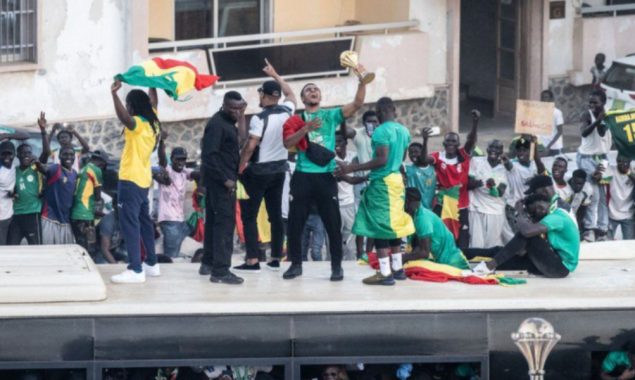 تاریخ میں پہلی بار افریقہ کپ آف نیشنز جیتنے کے بعد سینیگال کی فٹبال ٹیم کا وطن واپسی پر شاندار...