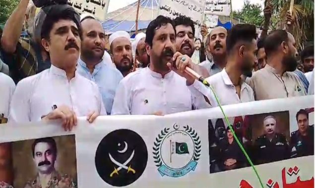 پشاور میں پاکستان ہیومن رائٹس ڈسٹرکٹ پشاور کا فوج کے حق میں مظاہرہ کیا گیا۔ پاک فوج کے حق میں...